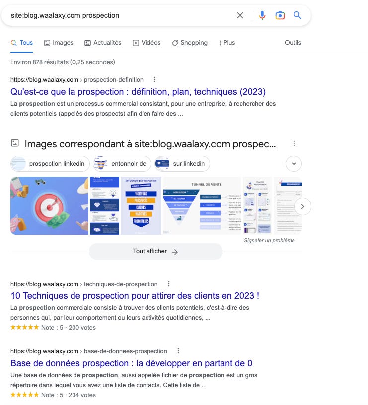 Si tu as plusieurs rĂ©sultats, vĂ©rifie quâils ciblent bien une intention de recherche diffĂ©rente et, quâils ont aussi une URL diffĂ©rente.