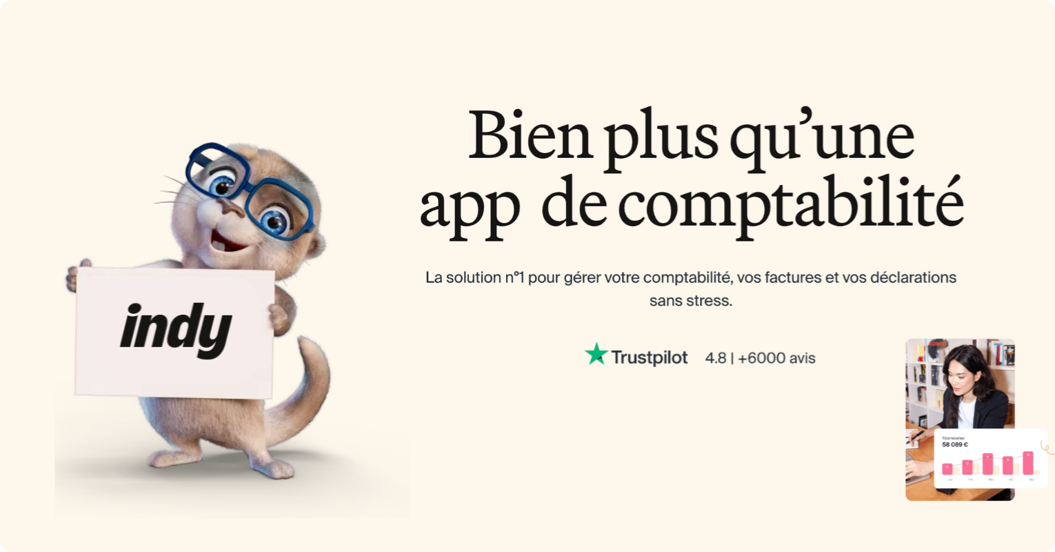 Indy, la solution de compta n°1 des indépendants. L'essentiel est gratuit : compta, compte pro et facturation + profitez de 2 mois offerts pour réaliser votre clôture fiscale en cliquant ici.