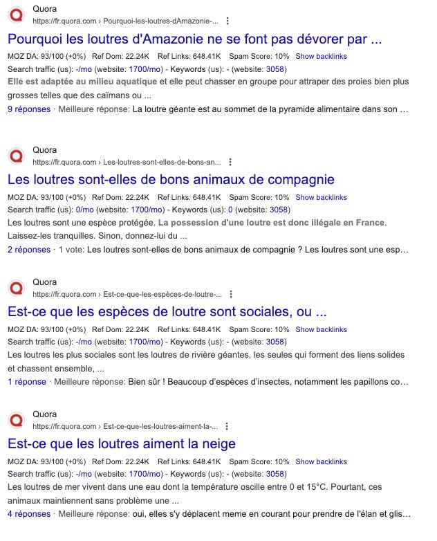 🦦 Trafic ciblé : ceux qui font ces recherches savent ce qu’ils veulent, et toi tu réponds parfaitement à leur besoin. (intention de recherche)
