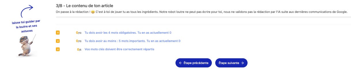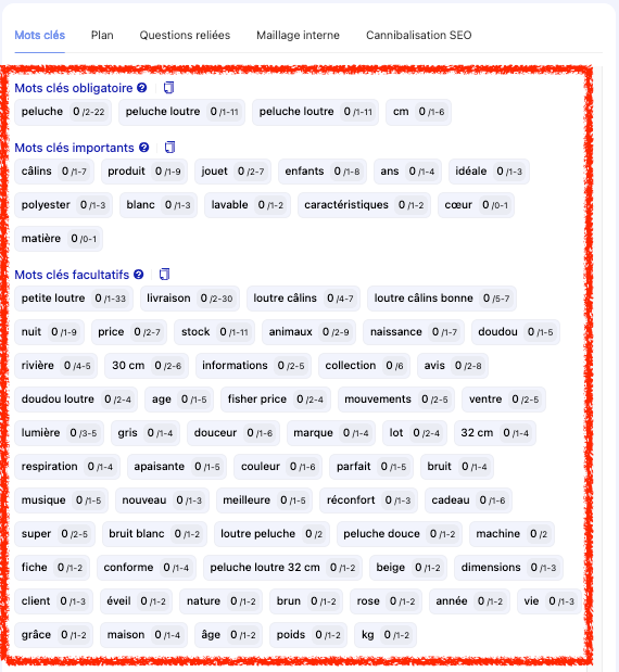 🔹 Choisir et mettre les mots-clés obligatoires, importants et facultatifs et leur occurrence dans mon article :