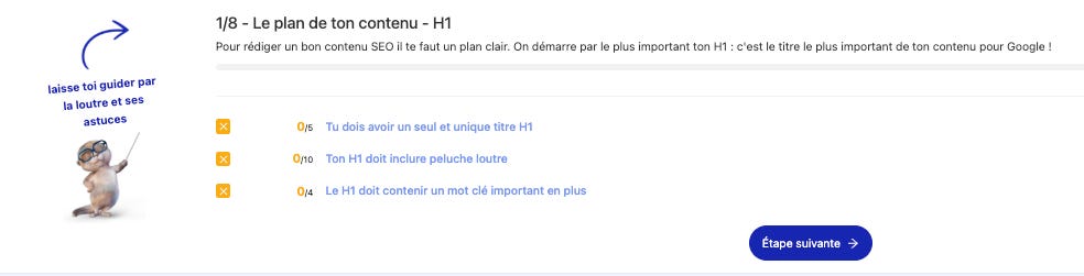 🦦 Loutrastuce : Mets tes mots-clés principaux et secondaires dans tes titres H1, H2, etc.-