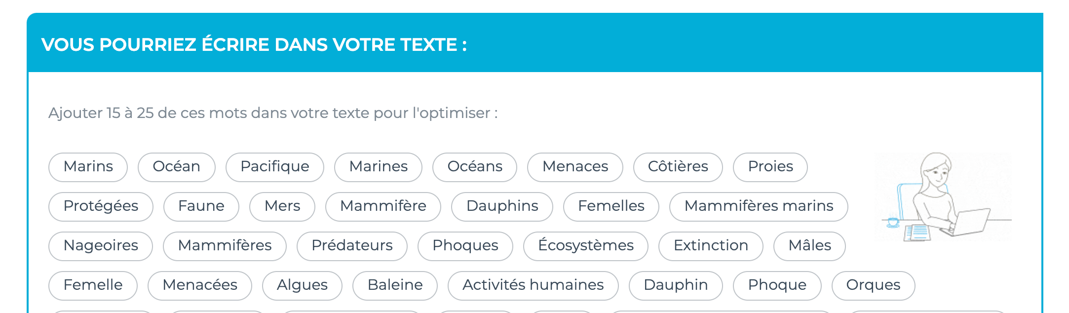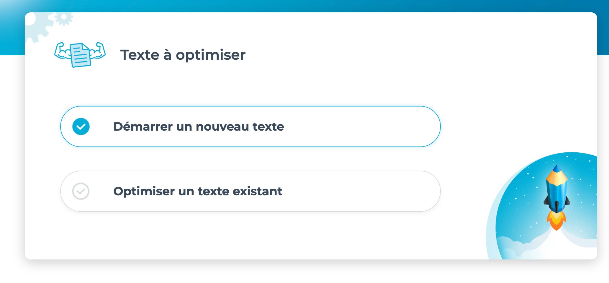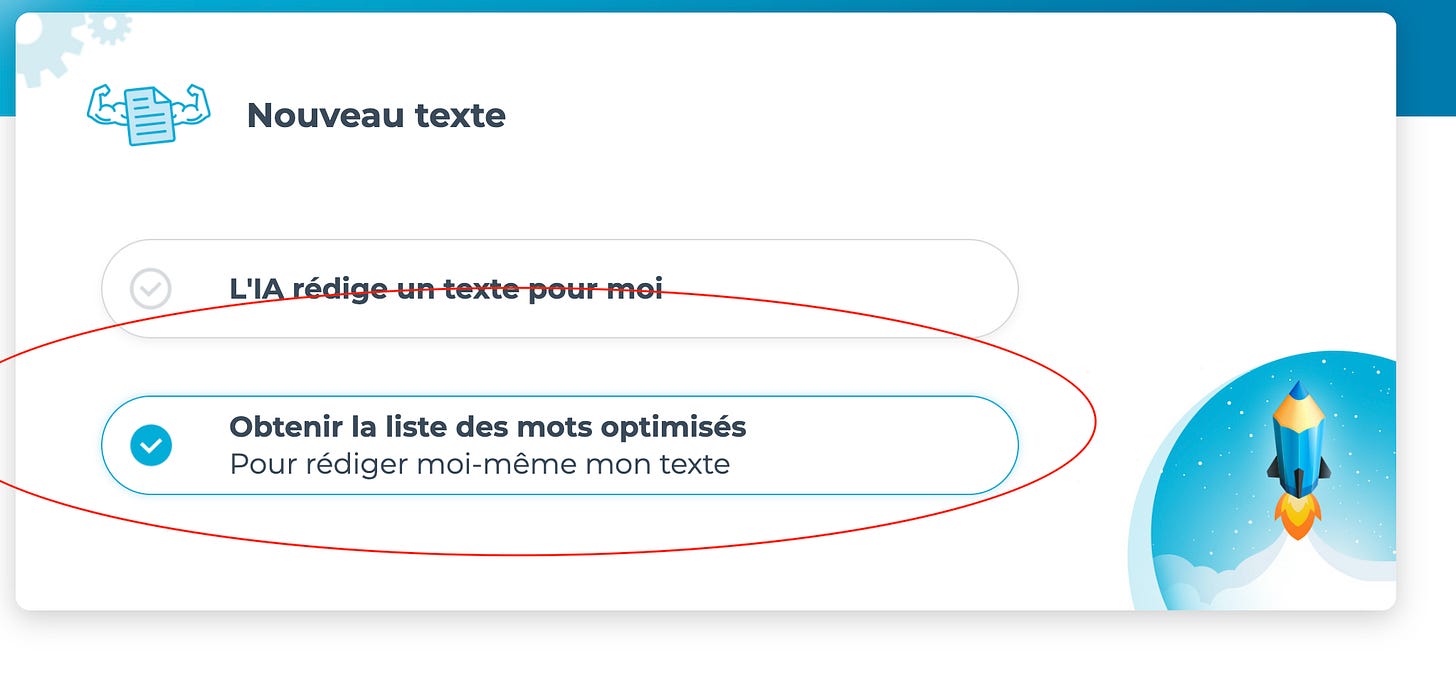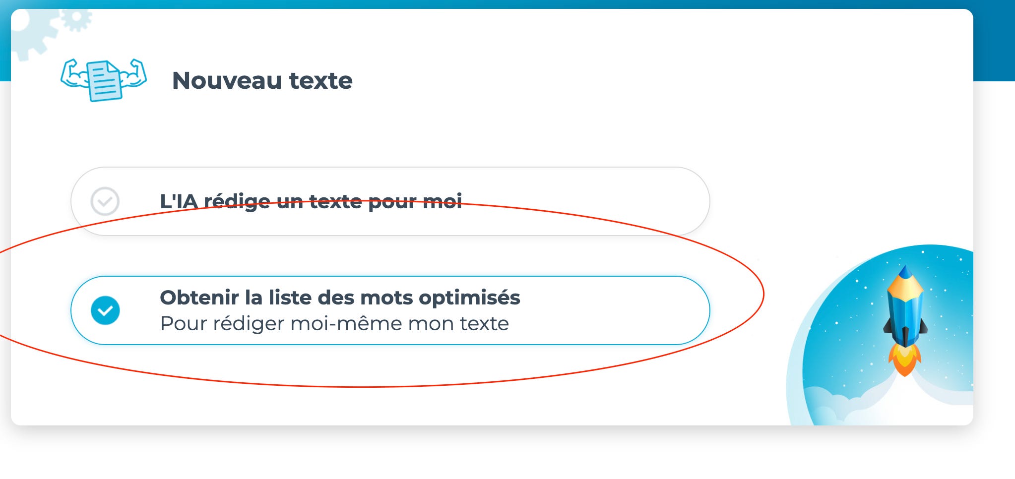 Cas 2 : Tu vas rĂ©diger et 1.fr peut tâaider Ă savoir quoi placer dans ton texte pour ĂȘtre sĂ»r quâil cartonne đ