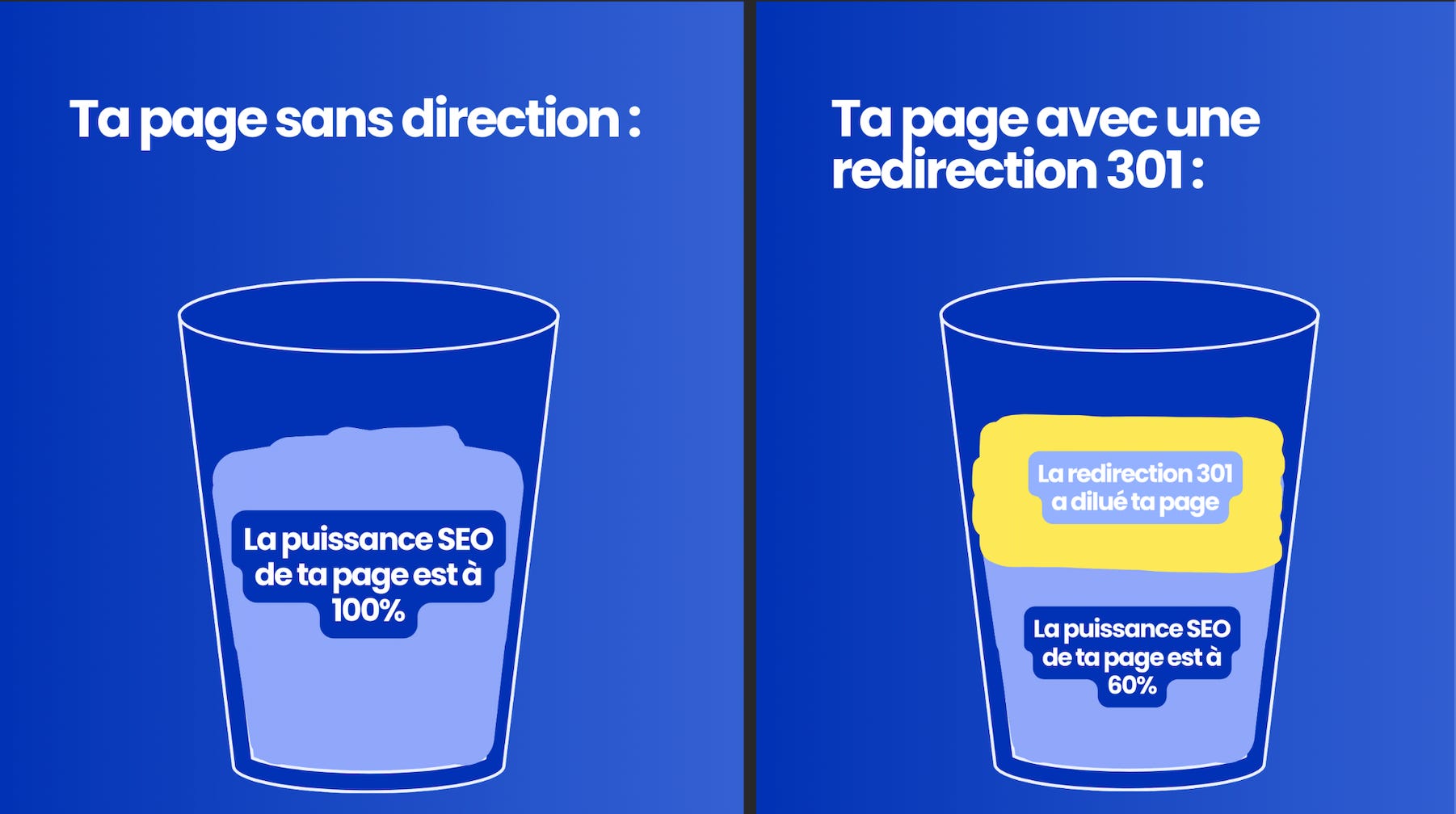Le problĂšme de ça ? Ăa affaiblit la puissance SEO de tes pages. Car oui, chaque redirection a un impact, on appelle ça la dilution de ta puissance SEO.