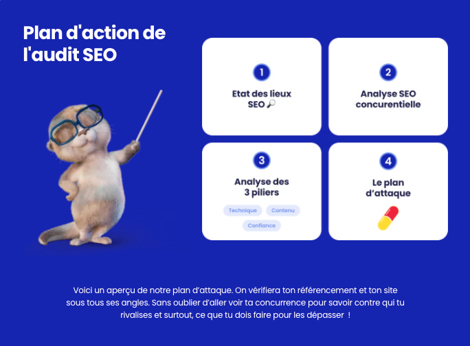 → Et surtout : l’audit nous permet de repartir avec une chose très précieuse quand tu fais face à une grosse concurrence : savoir quoi faire, dans quel ordre, et pourquoi (au lieu d’avancer à l’aveugle 🦮).